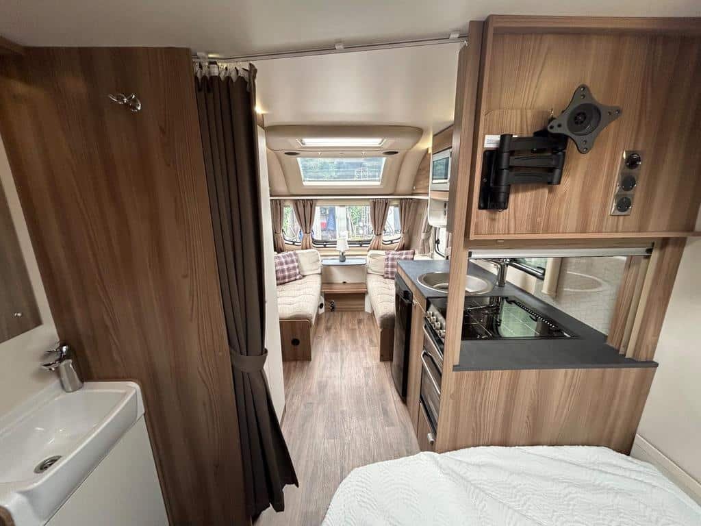 Built using Swift’s SMART construction technology, the Sprite Alpine 4 boasts a durable, timberless body shell with GRP outer layers, offering enhanced insulation and weather resistance. Stylish soft furnishings, LED lighting, and modern touches create a welcoming atmosphere inside, making it a pleasure to relax in after a day of adventure.