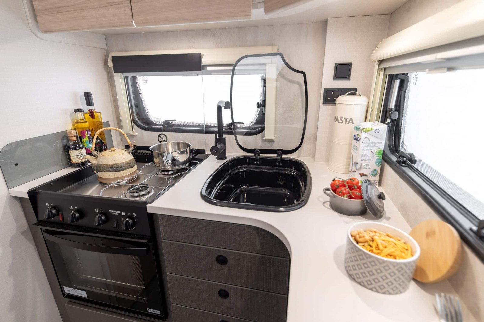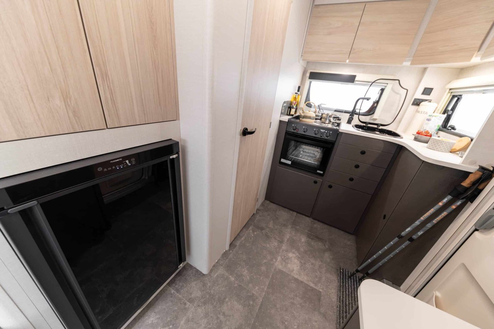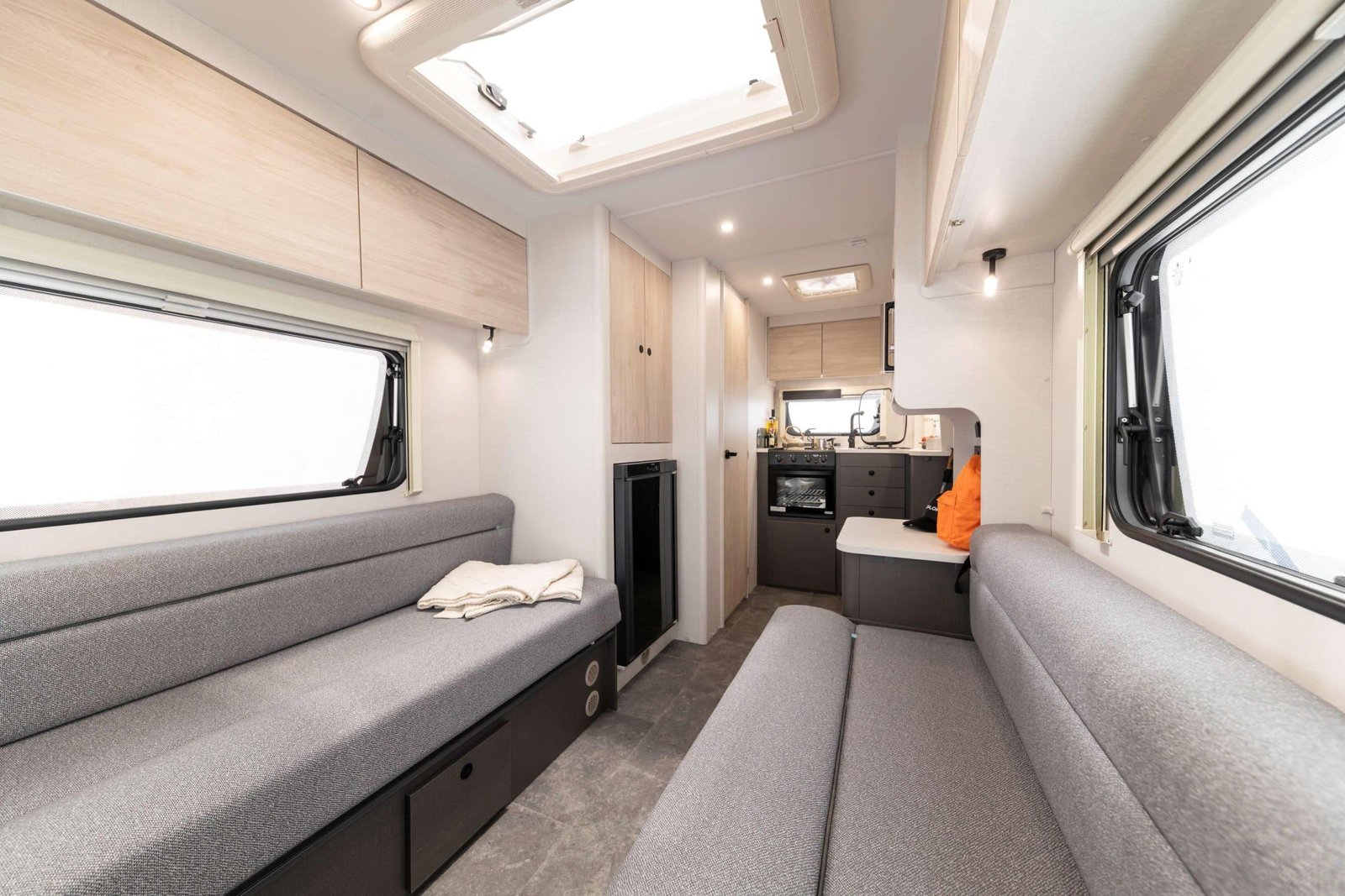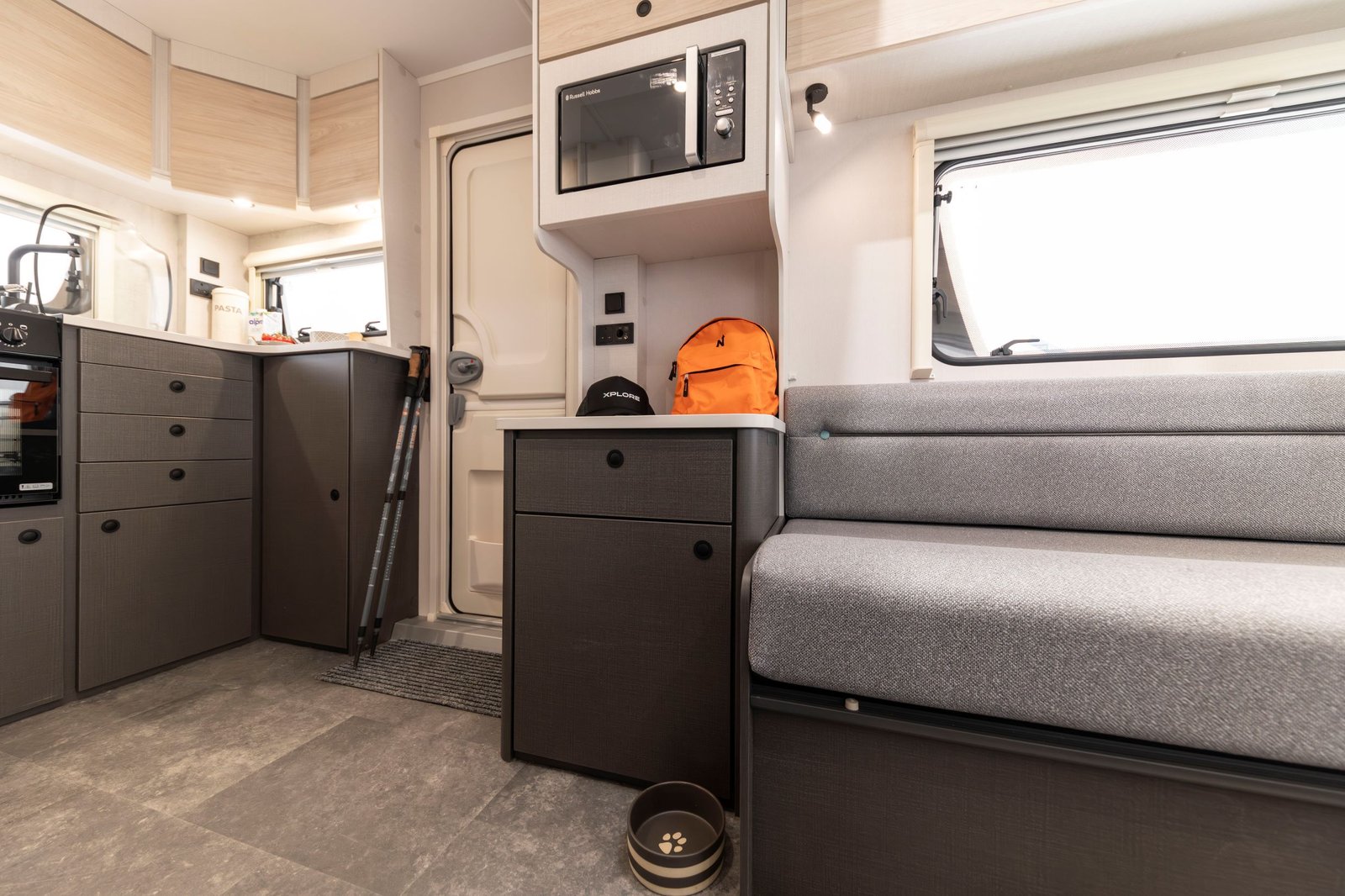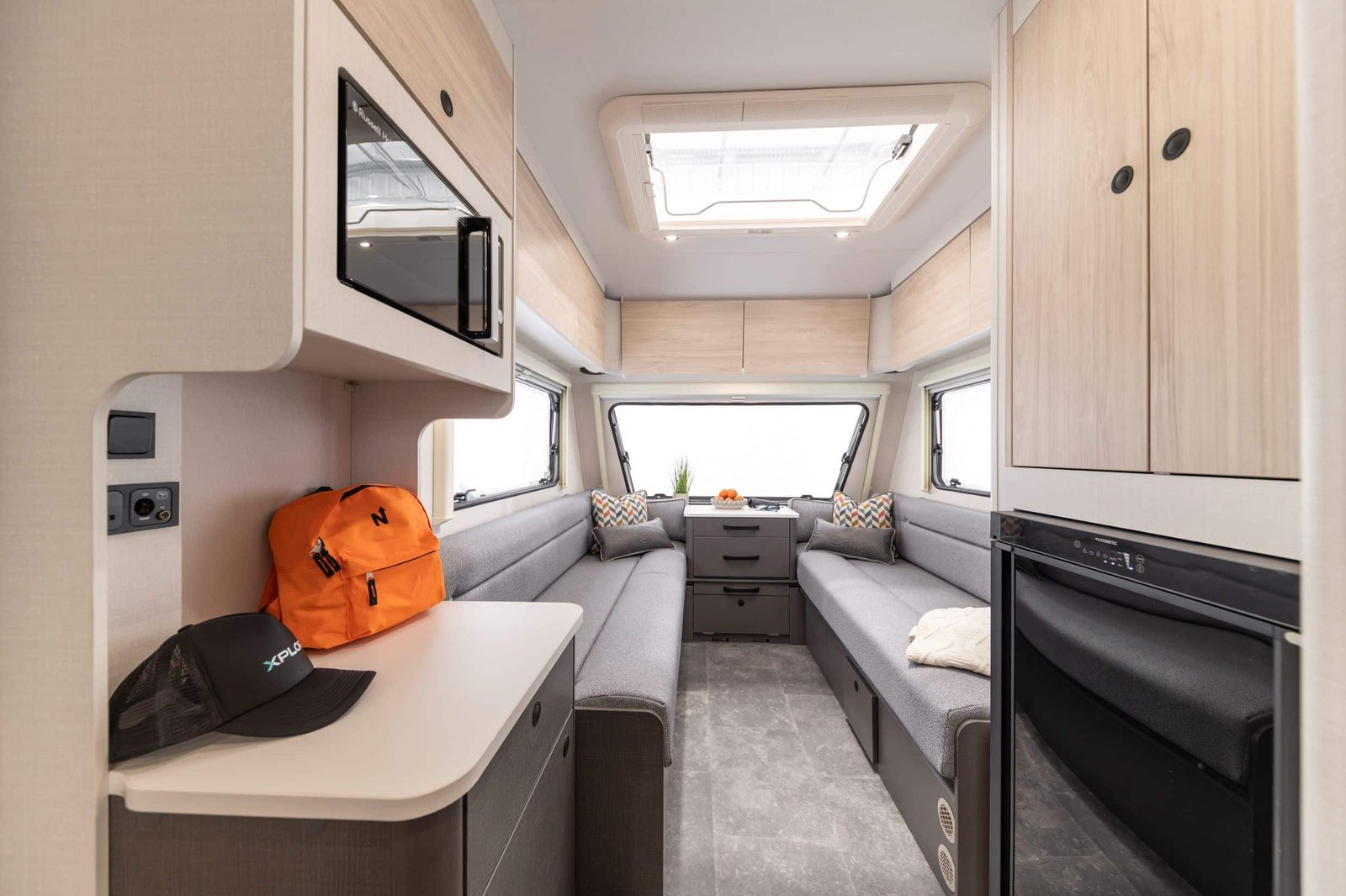 Borrowing from its 2025 sibling but stepping up for 2026, the XC Duo benefits from Xplore’s newly elevated specification. Expect thermal Grade III insulation, Whale heating, a microwave, dual-fuel hob, Dometic 98 L fridge, sleek charcoal-mounted cabinets with under-LED lighting, and durable tiled flooring built for adventure—not carpet.